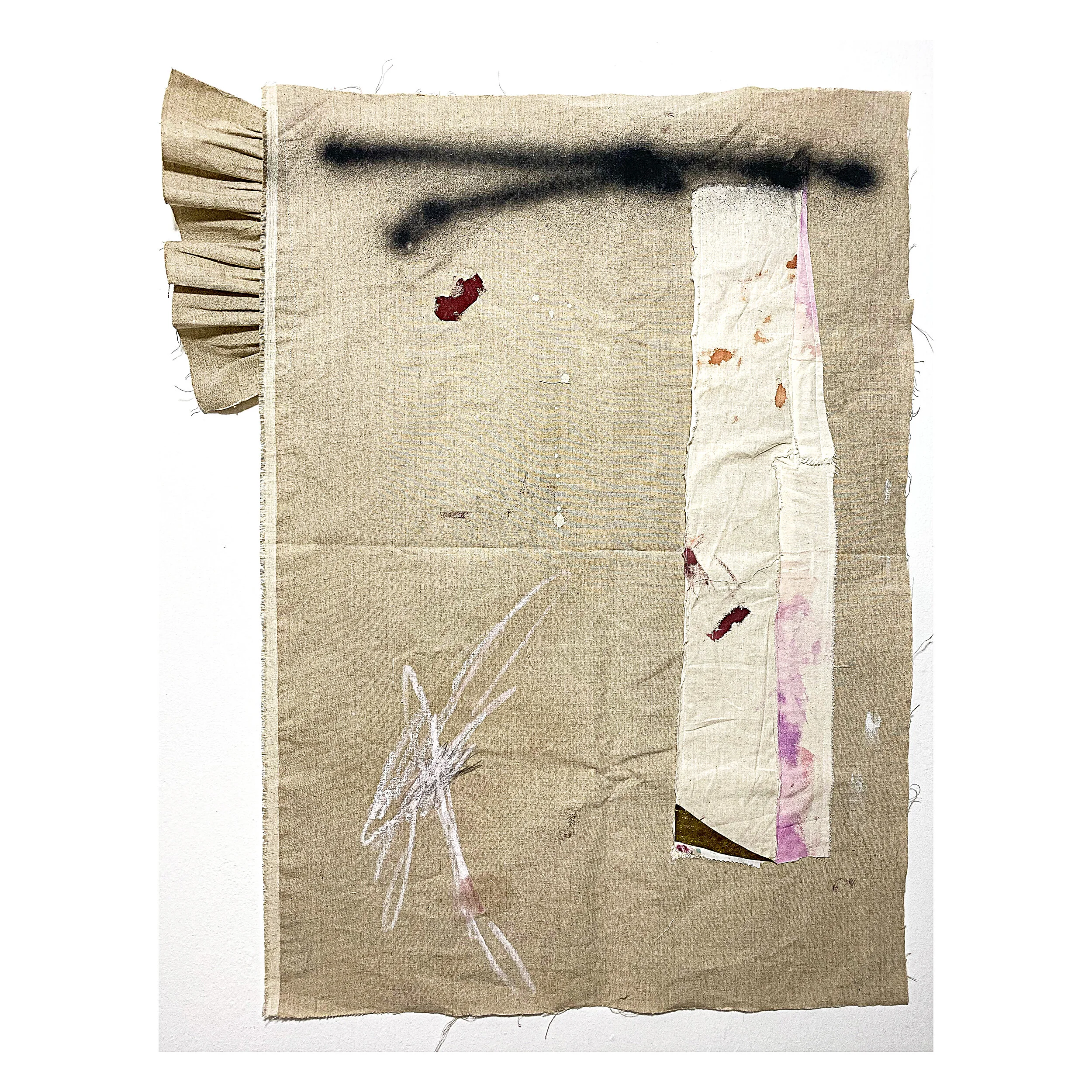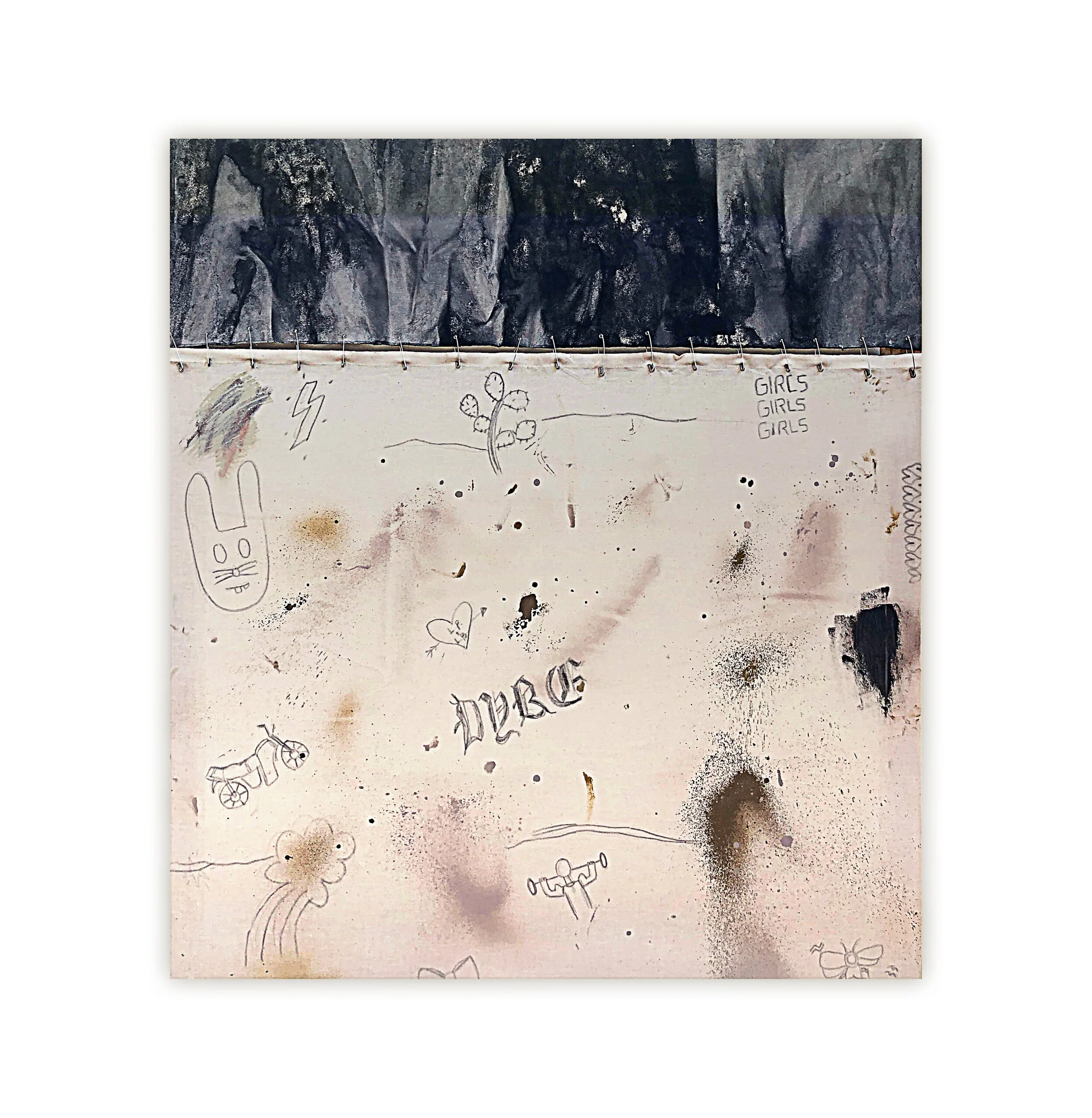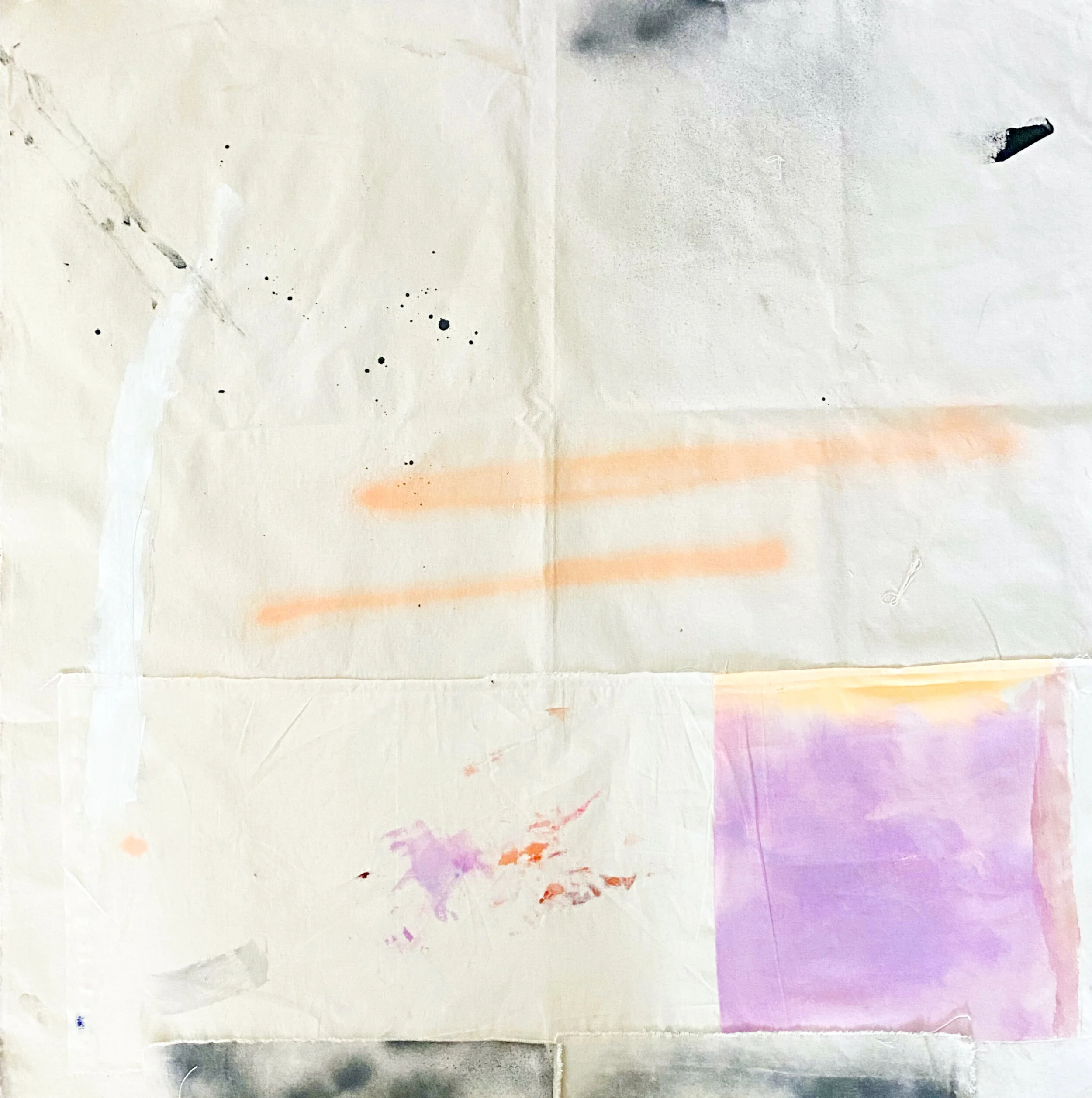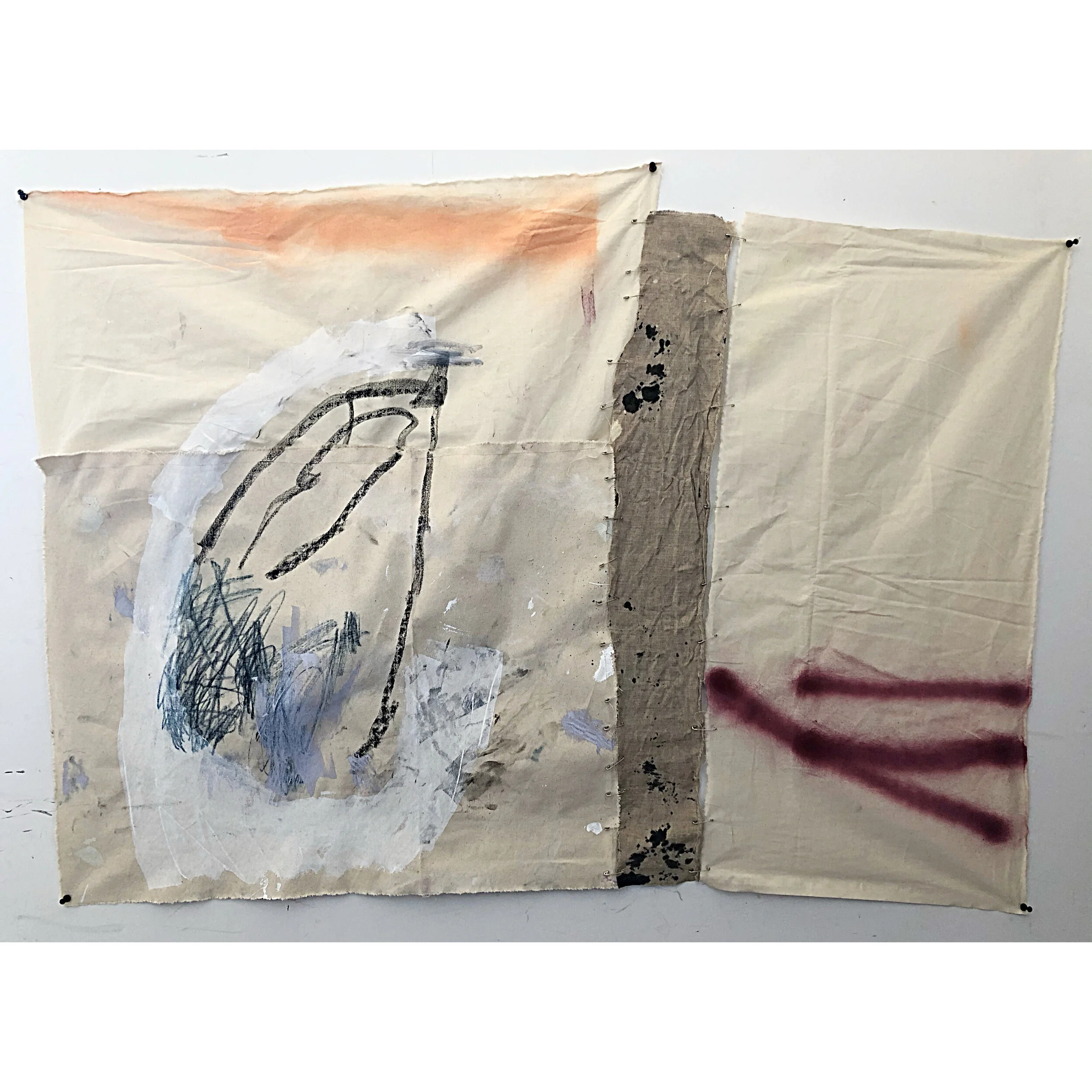 In this new body of work Iām thinking about Queer Utopias, subverting a heteronormative status quo dreaming of joyful futuristic spaces full of possibility. I use my identity as a queer feminist artist to examine the tension between material/emotion, and language/memory as I cut up old paintings and reconfigure them into something new. Mixing and experimenting with different materials, such as spray paint, bleach and safety pins, in addition to the inclusion of text and drawing allows for a tension and spontaneity in how they react to one another; a push-pull in exploring the visceral in the painterly.