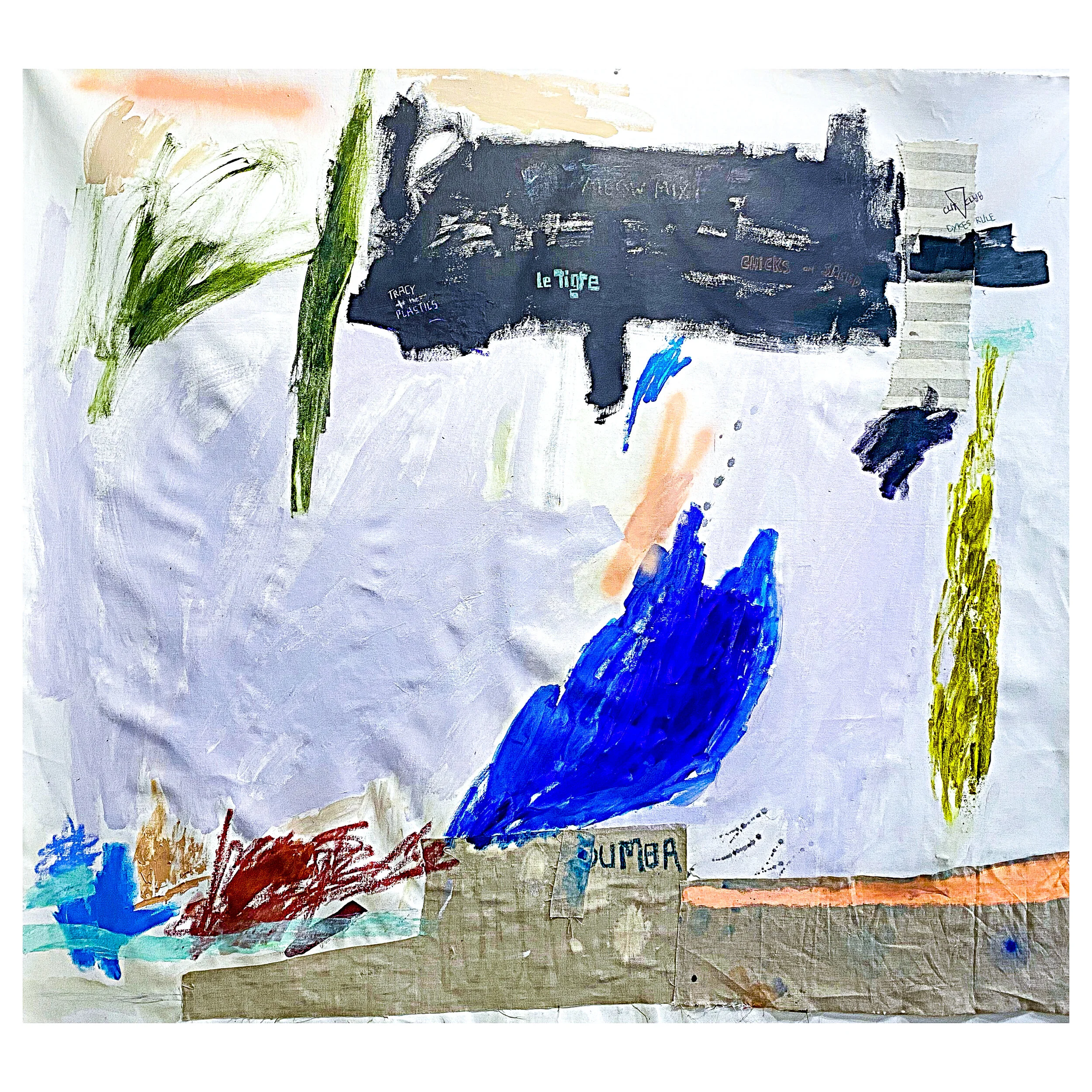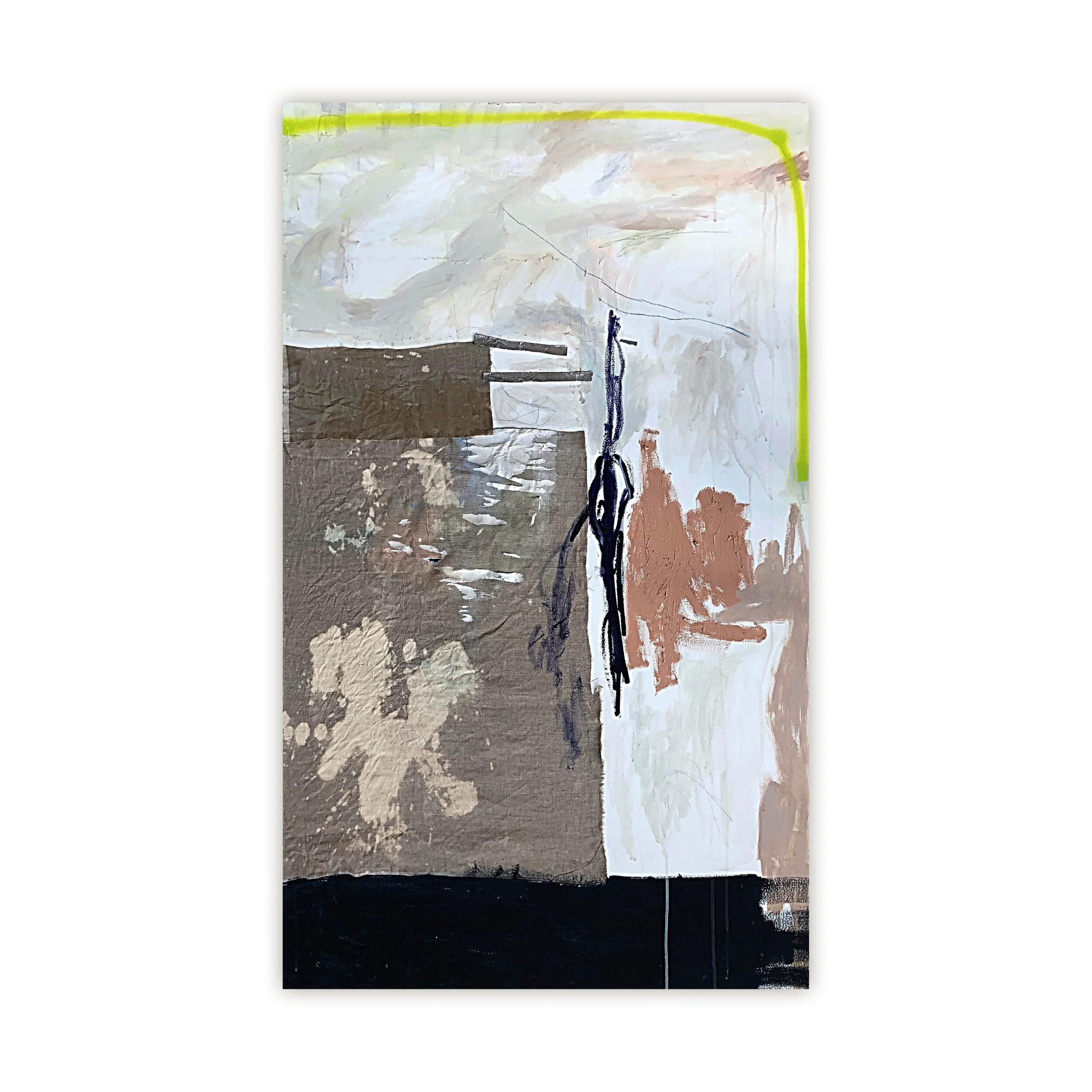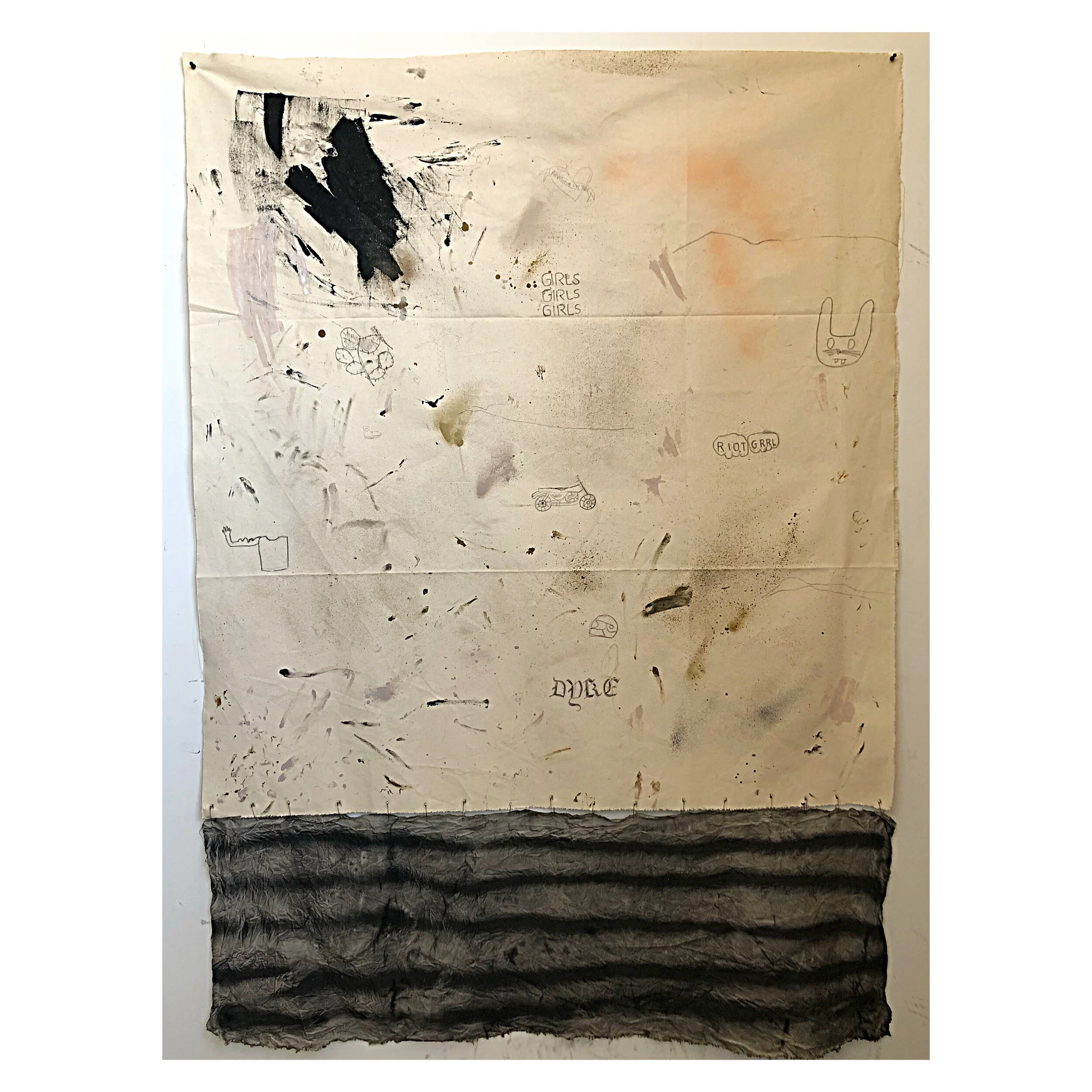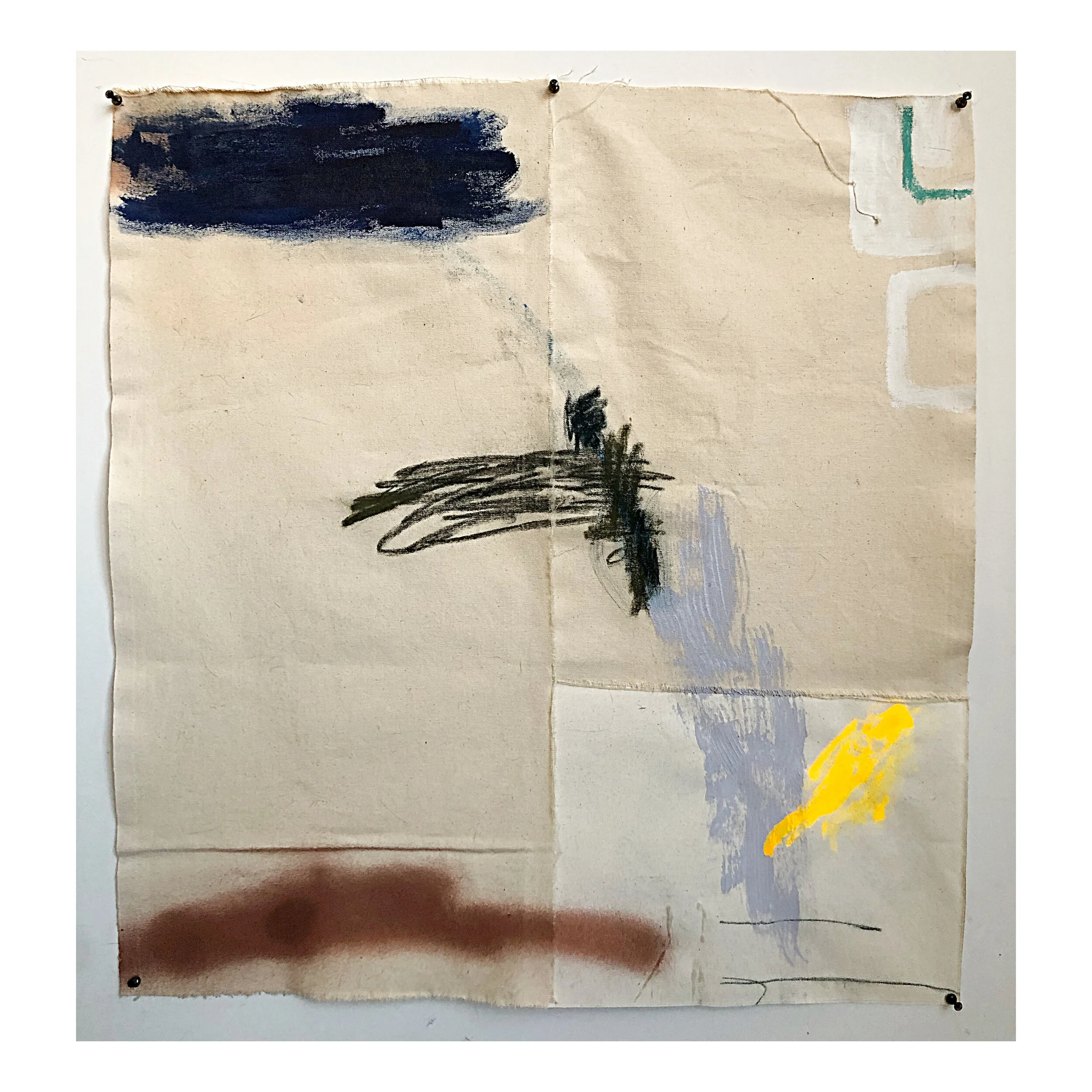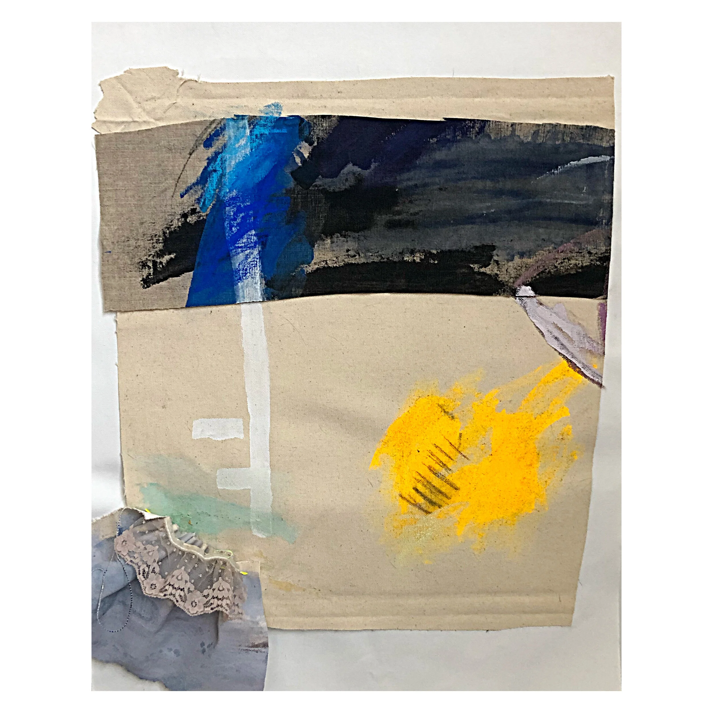 In this new body of work Iām thinking about Queer Utopias, subverting a heteronormative status quo dreaming of joyful futuristic spaces full of possibility. I use my identity as a queer feminist artist to examine the tension between material/emotion, and language/memory as I cut up old paintings and reconfigure them into something new. Mixing and experimenting with different materials, such as spray paint, bleach and safety pins, in addition to the inclusion of text and drawing allows for a tension and spontaneity in how they react to one another; a push-pull in exploring the visceral in the painterly.